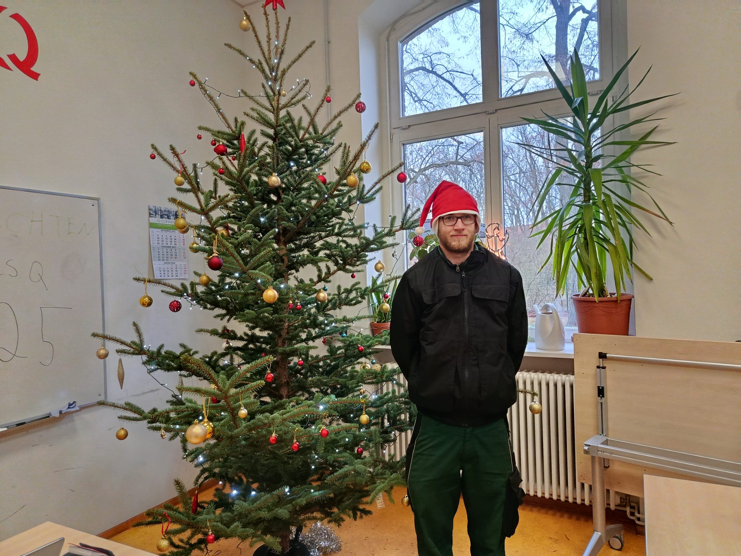 Als wir uns am Mitt­woch zur Re­dak­ti­ons­sit­zung in der Lern­in­sel ein­fan­den, emp­fing uns die­se in stark ver­än­der­ter Op­tik. Un­se­re au­gen­blick­lich ein­set­zen­de Re­cher­che er­gab: Seit Mon­tag ver­strö­men ein fest­lich ge­schmück­ter Weih­nachts­baum und der eben­so an­ge­ta­ne Fi­cus Ben­ja­mi­na weih­nacht­li­ches Flair der be­hag­lichs­ten Art.