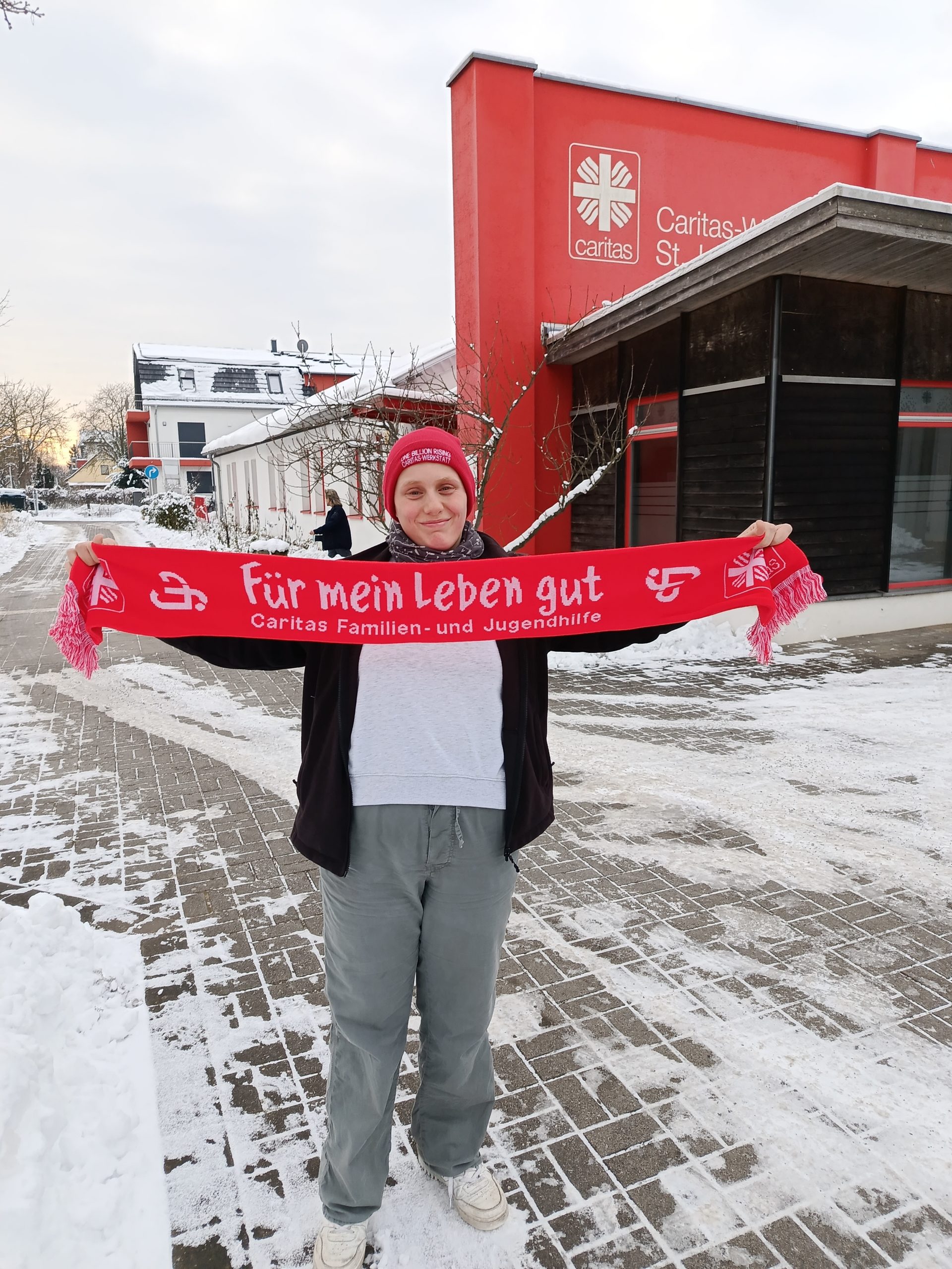 Am 8 Ja­nu­ar 2026 gab es an al­len 3 Stand­or­ten un­se­rer Ca­ri­tas-Werk­statt ei­nen ganz be­son­de­ren Foto-Ter­min. Auf der klei­nen Wie­se zwi­schen Can­ti­na und Ver­wal­tung der Haupt­werk­statt wur­de aus klei­nen Pap­pen eine rie­si­ge 50 zu­recht­ge­legt. Fürs da­zu­ge­hö­ri­ge Foto er­hiel­ten alle, die mit­mach­ten, ei­nen coo­len Mot­to-Schal in den Far­ben un­se­res Trä­gers, den wir so­gar be­hal­ten dürfen.