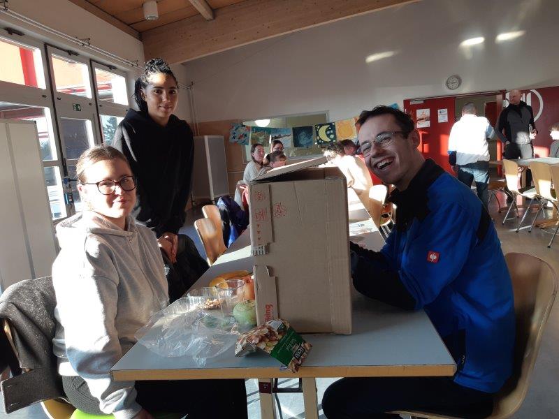 An einer anderen Station puzzelten wir, die Bilder zeigten Obst, Gemüse und ungesunde Sachen. Anschließend sollten wir raten, was davon gesund ist und was nicht. An weiteren Stationen spielten wir Memory, errieten verschiedene Kräuter an ihrem Duft und erfühlten mit geschlossenen Augen Obst- und Gemüsearten.