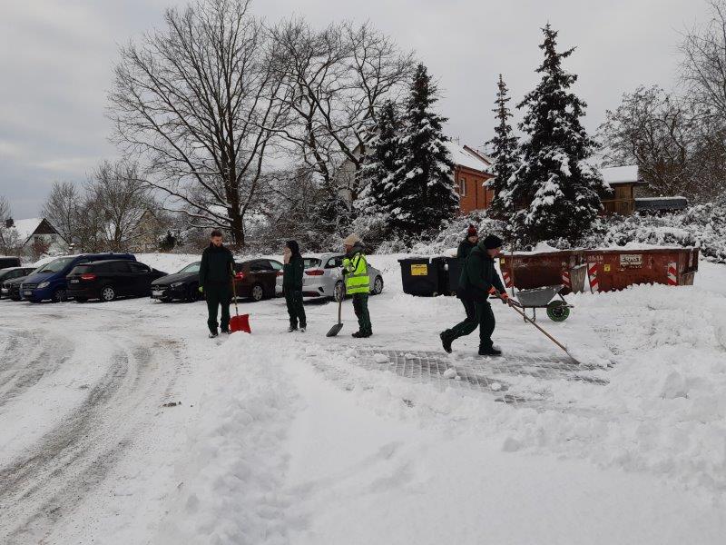 Philipp Focking, Clemens Bengsch und Matthias Dahlke wechseln sich wöchentlich als Gruppenleiter ab, unseren Winterdienst zu koordinieren. Über den Tag sorgen dann auch Nadja Meißgeier und alle anderen aus dem Gartenbereich vor allem von Hand dafür, dass wir uns auf dem Betriebsgelände sicher bewegen können.