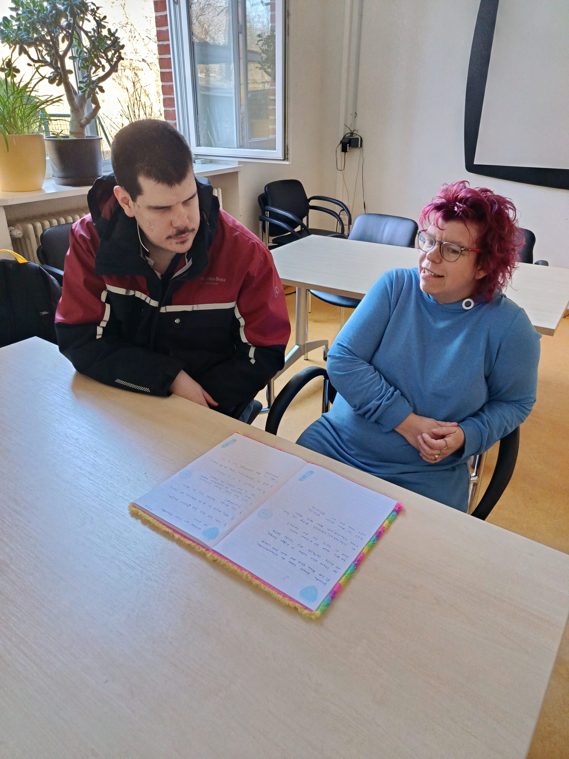 Am liebsten arbeite ich an der Kasse. Ich mag die Verantwortung und arbeite so präzise wie möglich. Unsere Pausen sind kurz, und die anderen in der Schlange wollen auch Zeit haben, zu essen. Trotzdem frage ich auch mal nach, ob‘s noch was sein darf. Wenn ich weiß, dass eine Person zum Kuchen gern einen Kakao nimmt, frage ich: „Und dazu einen Kakao?“